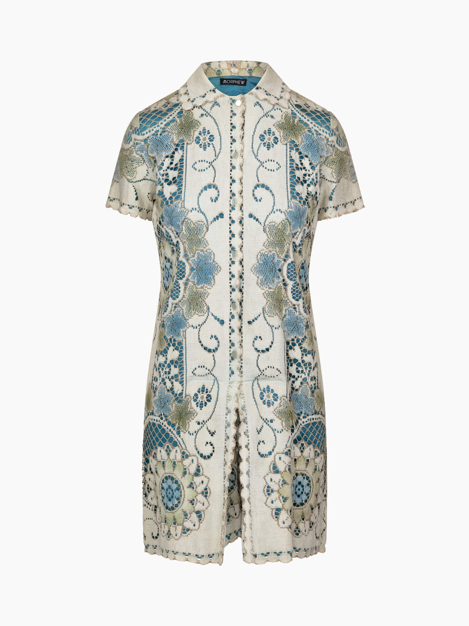 This 1960's Hand Painted Lace Romper Jumpsuit is composed of a luxurious lace material and decorated with intricate hand painting, creating a stylish ensemble with a timeless appeal. The lace and hand painting provide an exquisite combination of sophistication and artistry.