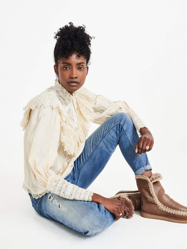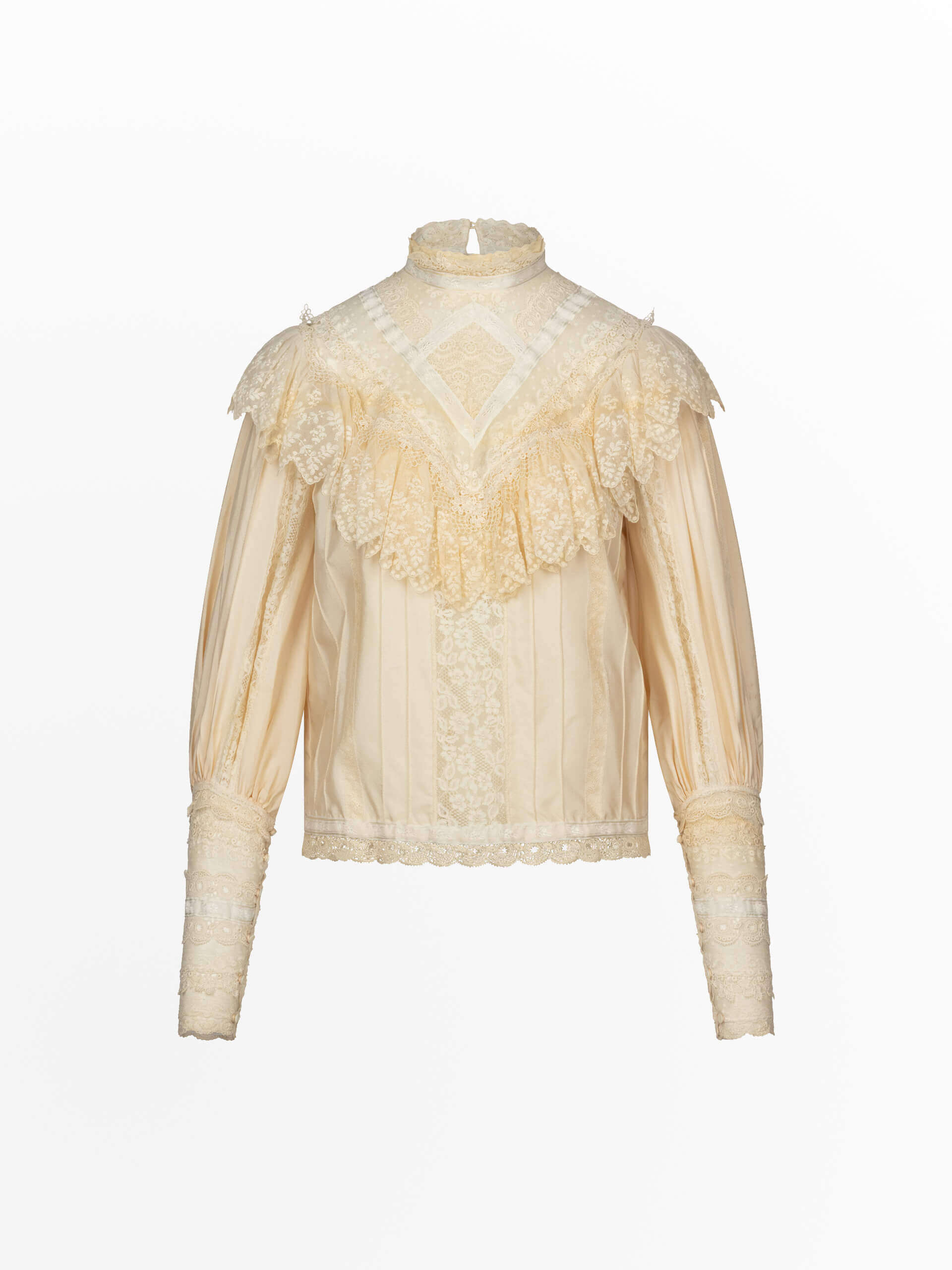 Made from antique lace by the designer David Fielden, this blouse makes any outfit chic.