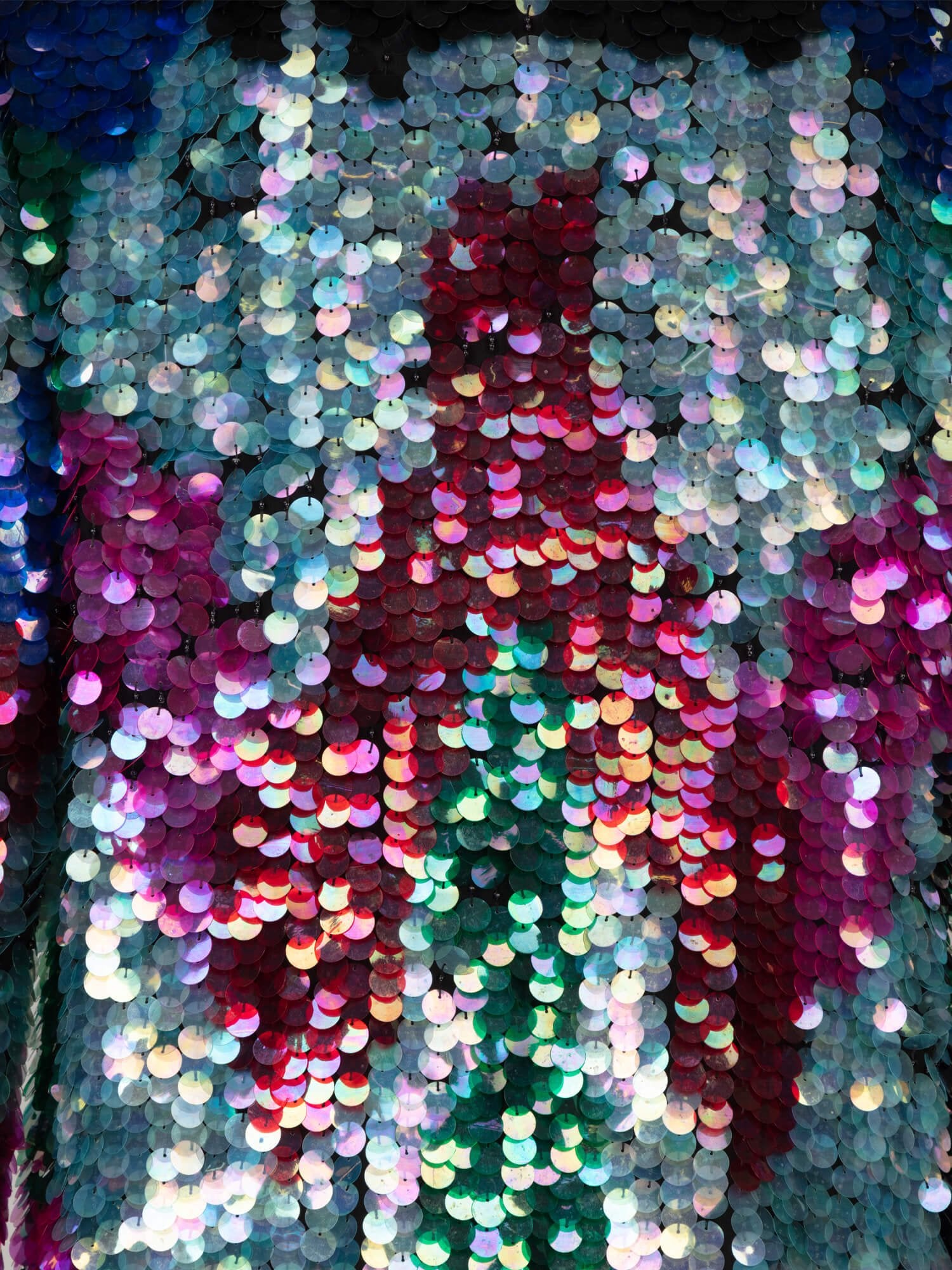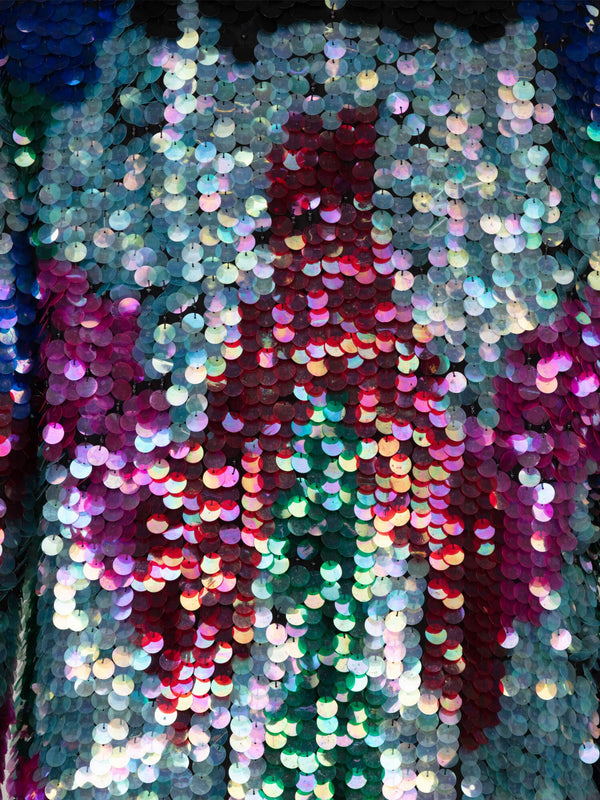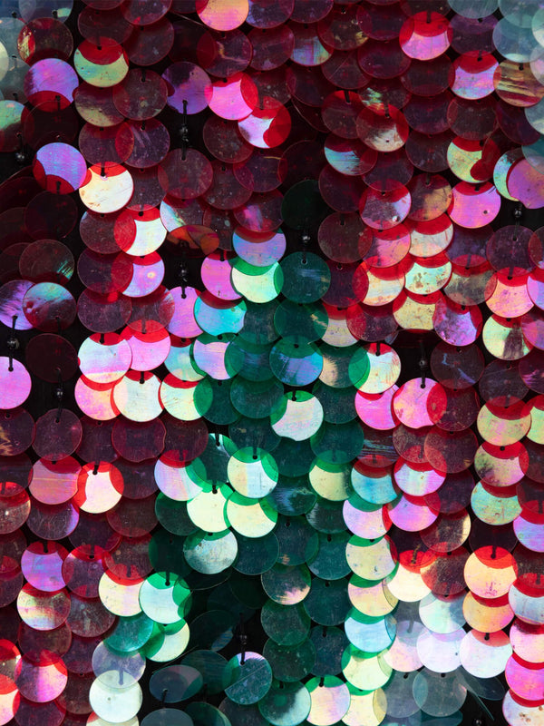 This 1980's Sequin Jacket features shoulder padding and bead trim for a stylish look. Crafted from durable materials, this jacket is designed to last through everyday wear. With eye-catching sparkle and luxurious trim, this jacket will make a statement. Covered in black, blue and pink sequins.